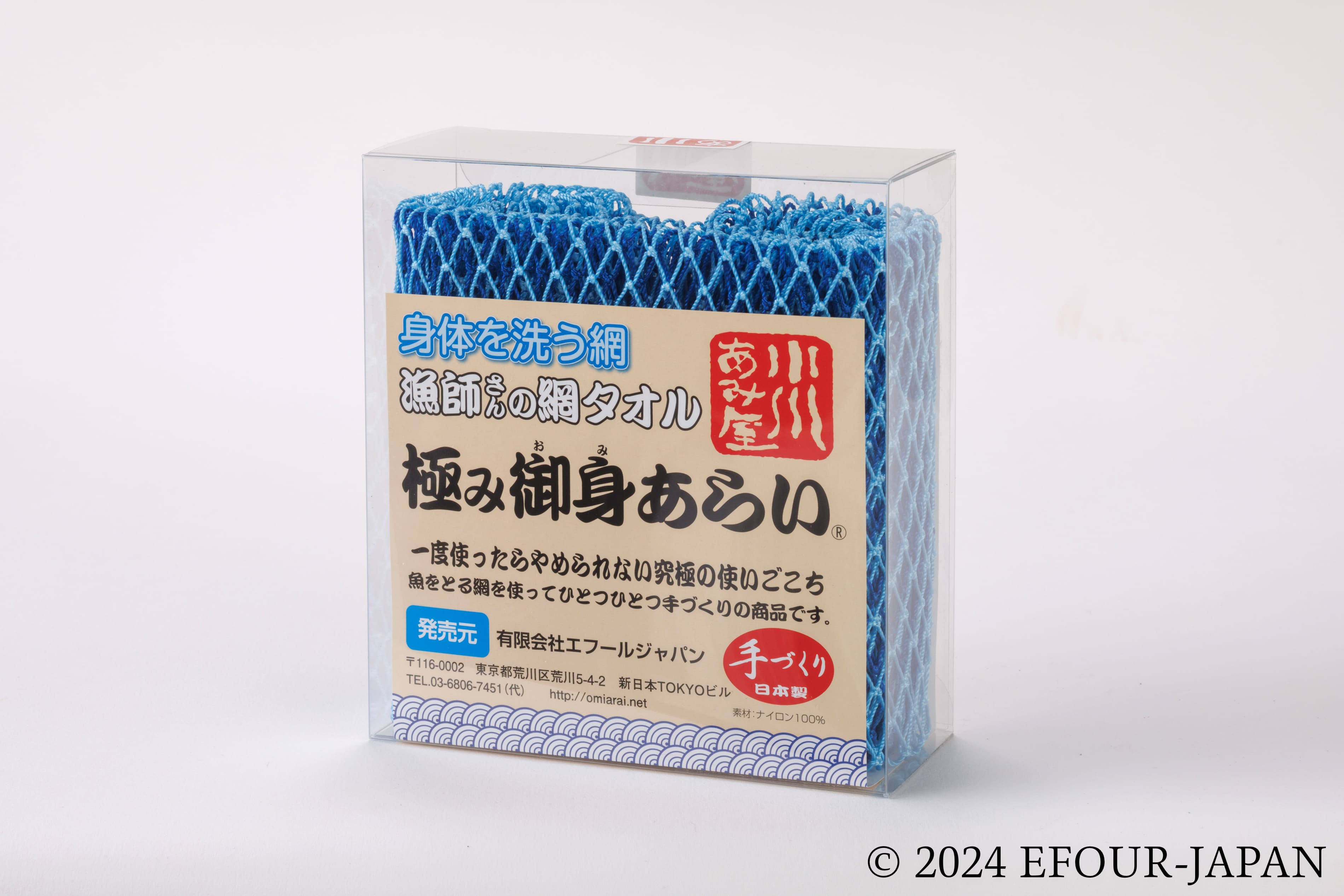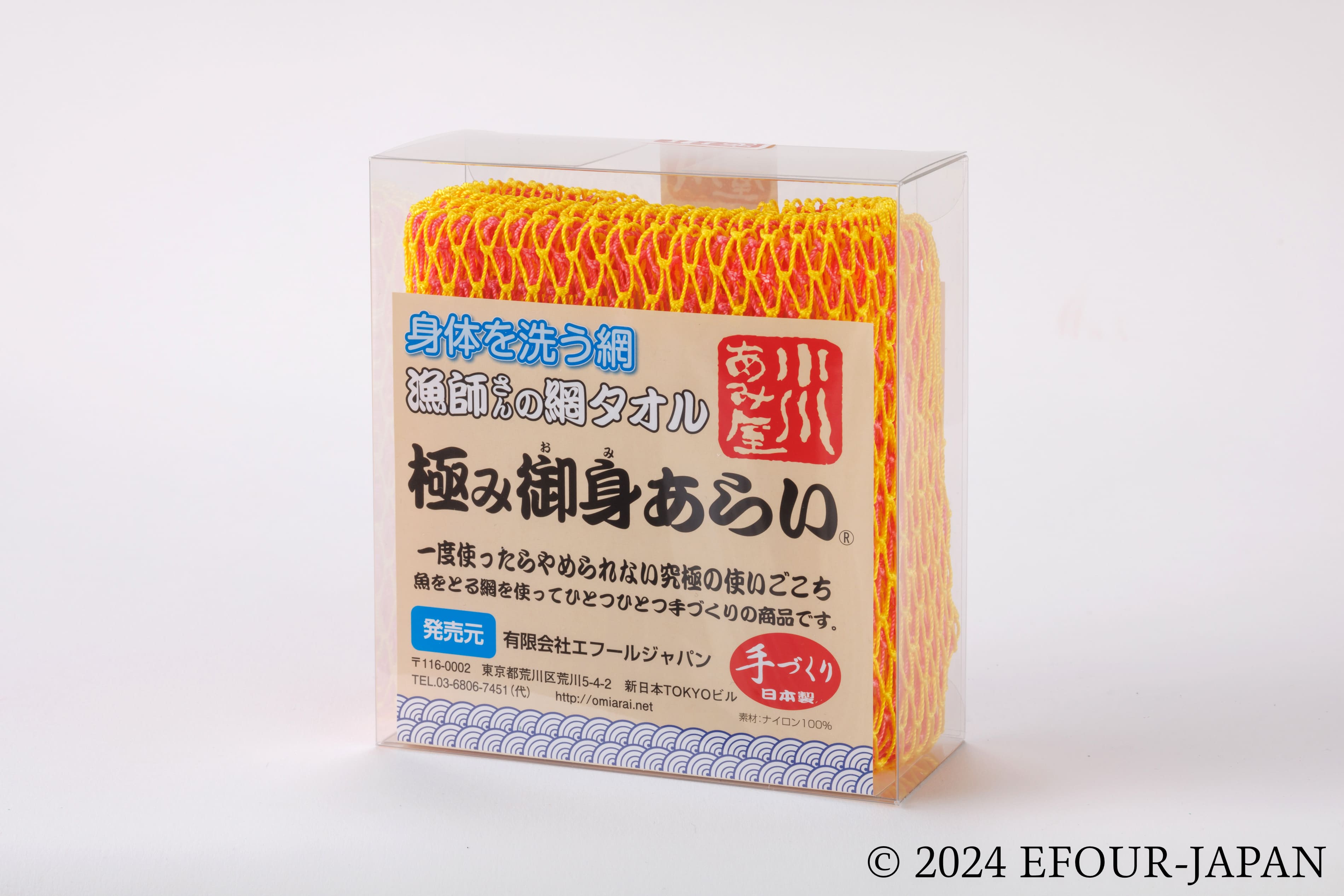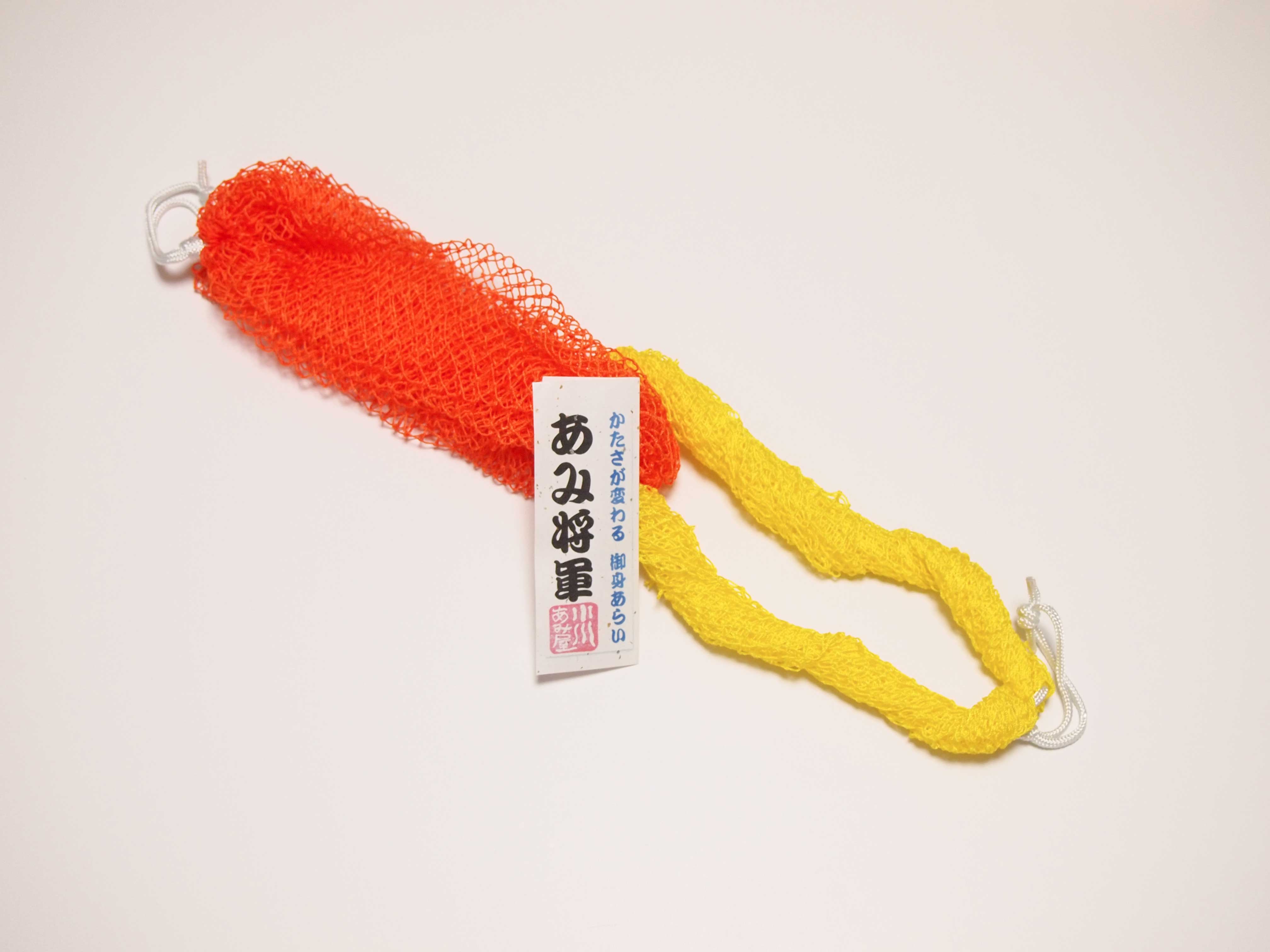 通常の「御身あらい」で使用する漁網を2枚重ねすることで、泡立ちや使い心地が倍増しています。