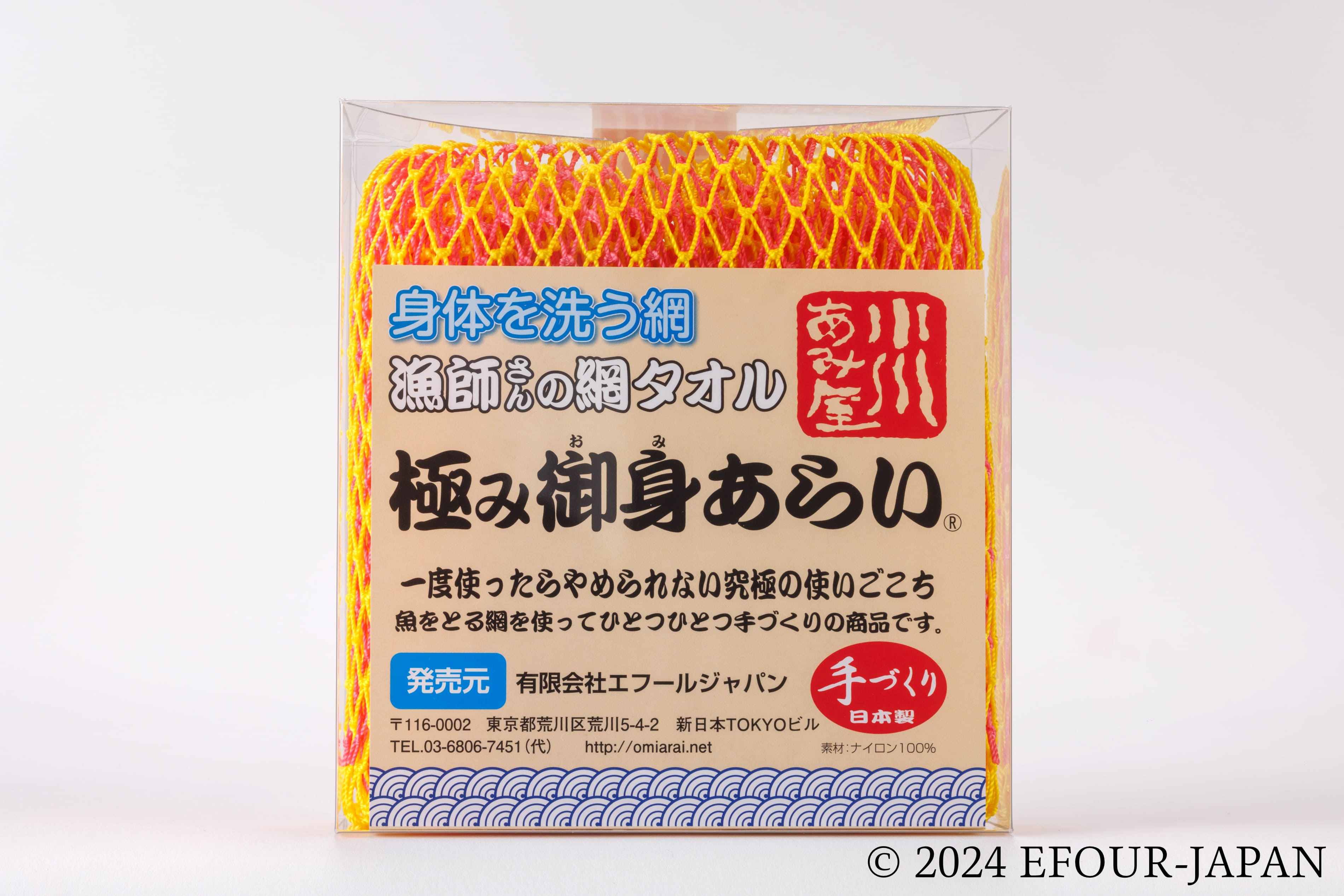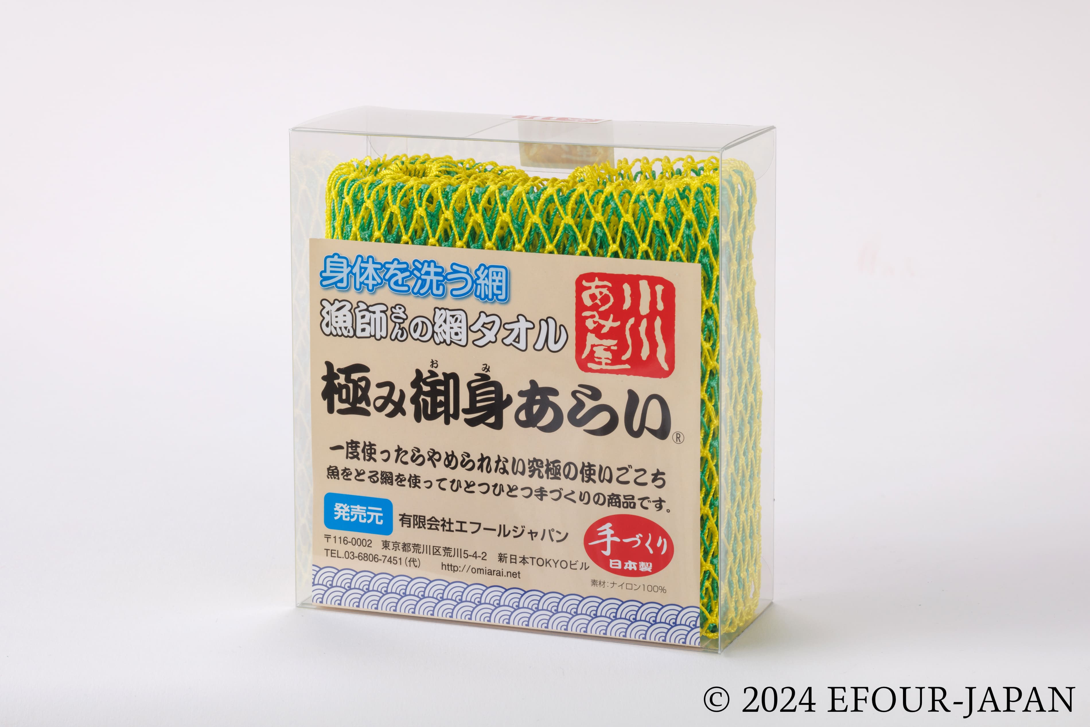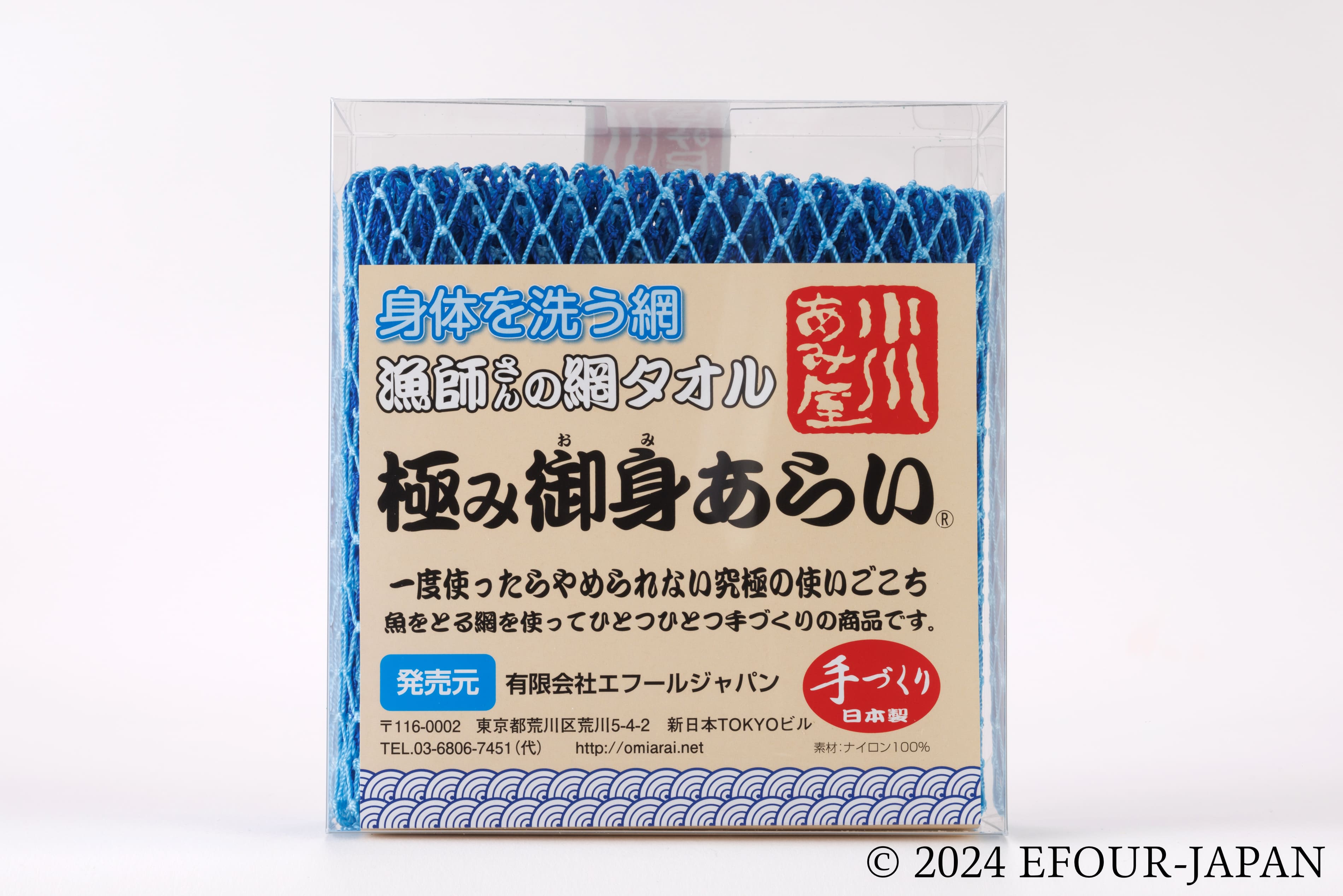 通常の「御身あらい」で使用する漁網を2枚重ねすることで、泡立ちや使い心地が倍増しています。