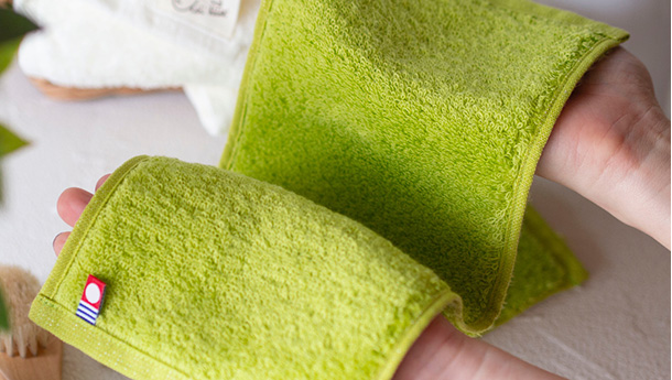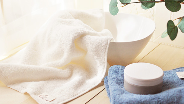 軽量感、抜群の吸水力、速乾性、毛羽落ちの少なさ、ふっくら感の持続といった特徴があります。たっぷり空気を含んでいるので、同じ重さのタオルと比較しても2倍のふっくらボリュームがあります。糸に空気の隙間があるため、吸水性・速乾性に優れます。
